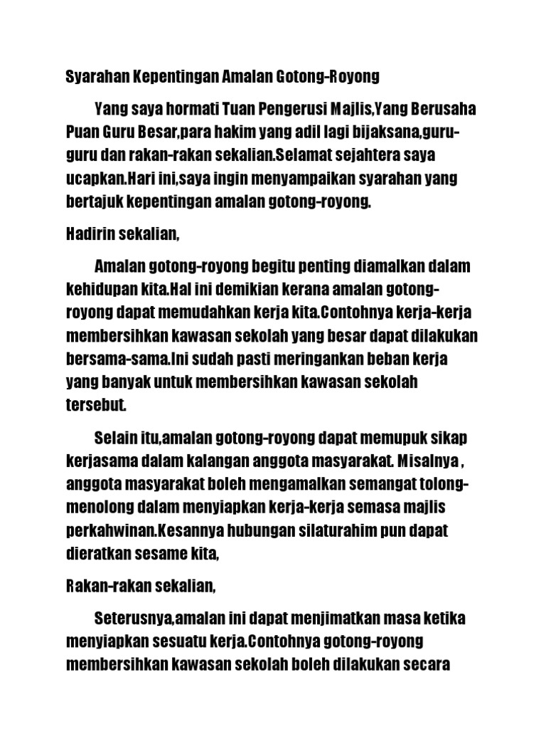 Contoh Karangan Syarahan Gotong-royong